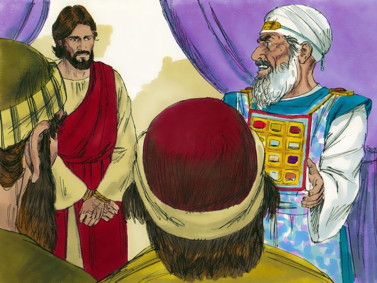 Mas Jesus ficou calado. Então o Grande Sacerdote tornou a perguntar: “Em nome do Deus vivo, eu exijo que você diga para nós: você é o Messias, o Filho de Deus?”